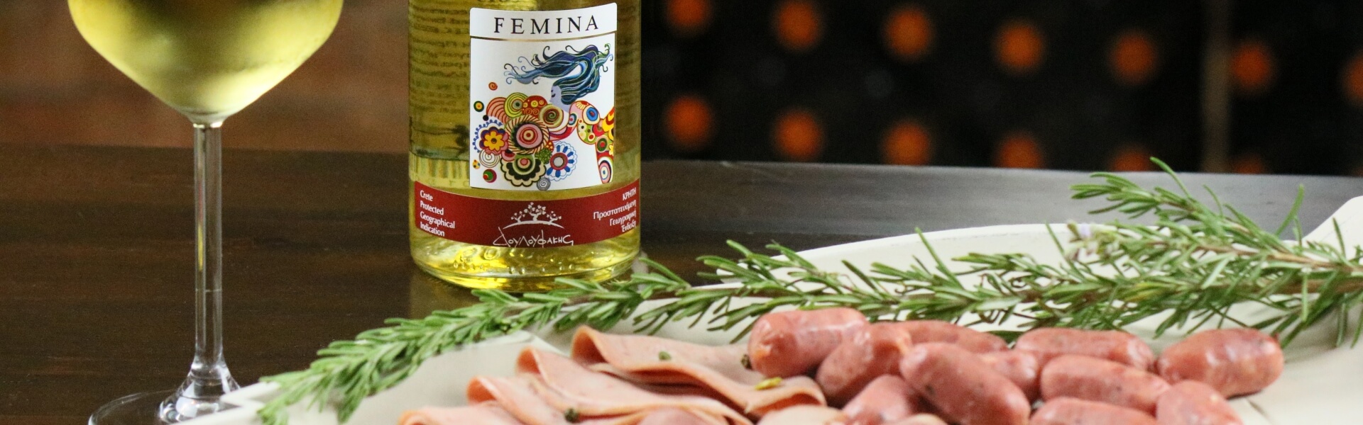 Ένα αρωματικό λευκό κρασί, όπως το Femina Δουλουφάκη από την ποικιλία Malvasia di Candia Aromatica, μπορεί να σερβιριστεί συνοδεία ενός ελαφριού σε γεύση ζαμπόν (jambon).