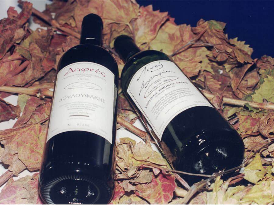 Die erste Abfüllung von zwei Weinen erfolgt in 750ml-Flaschen: Ein trockener Rotwein aus Liatiko, Dafnes PDO und ein trockener Weißwein aus Sauvignon Blanc.