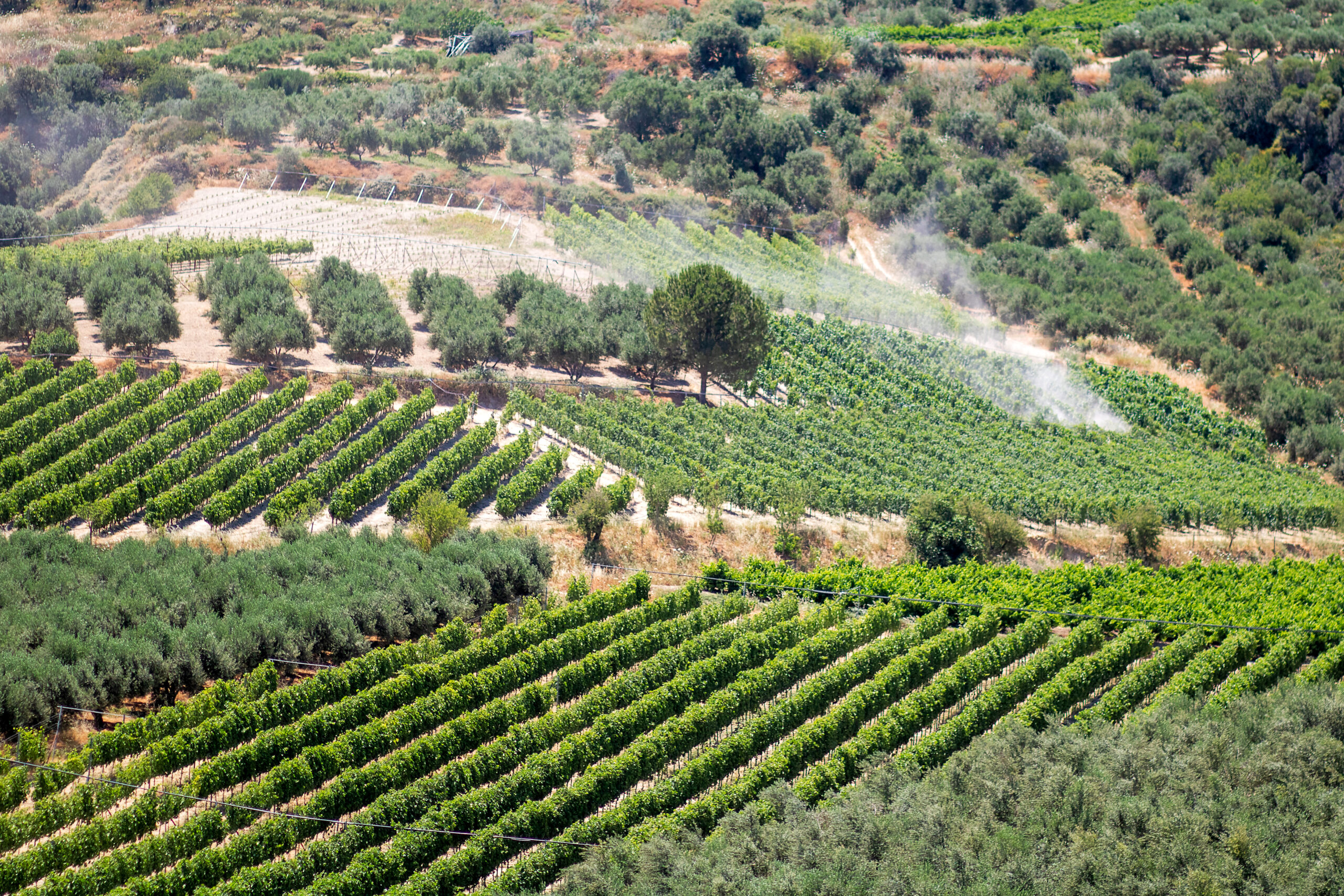 Die Gesamtanbaufläche auf der Insel beträgt etwa 1.500–2.000 Stremma Weinberge.