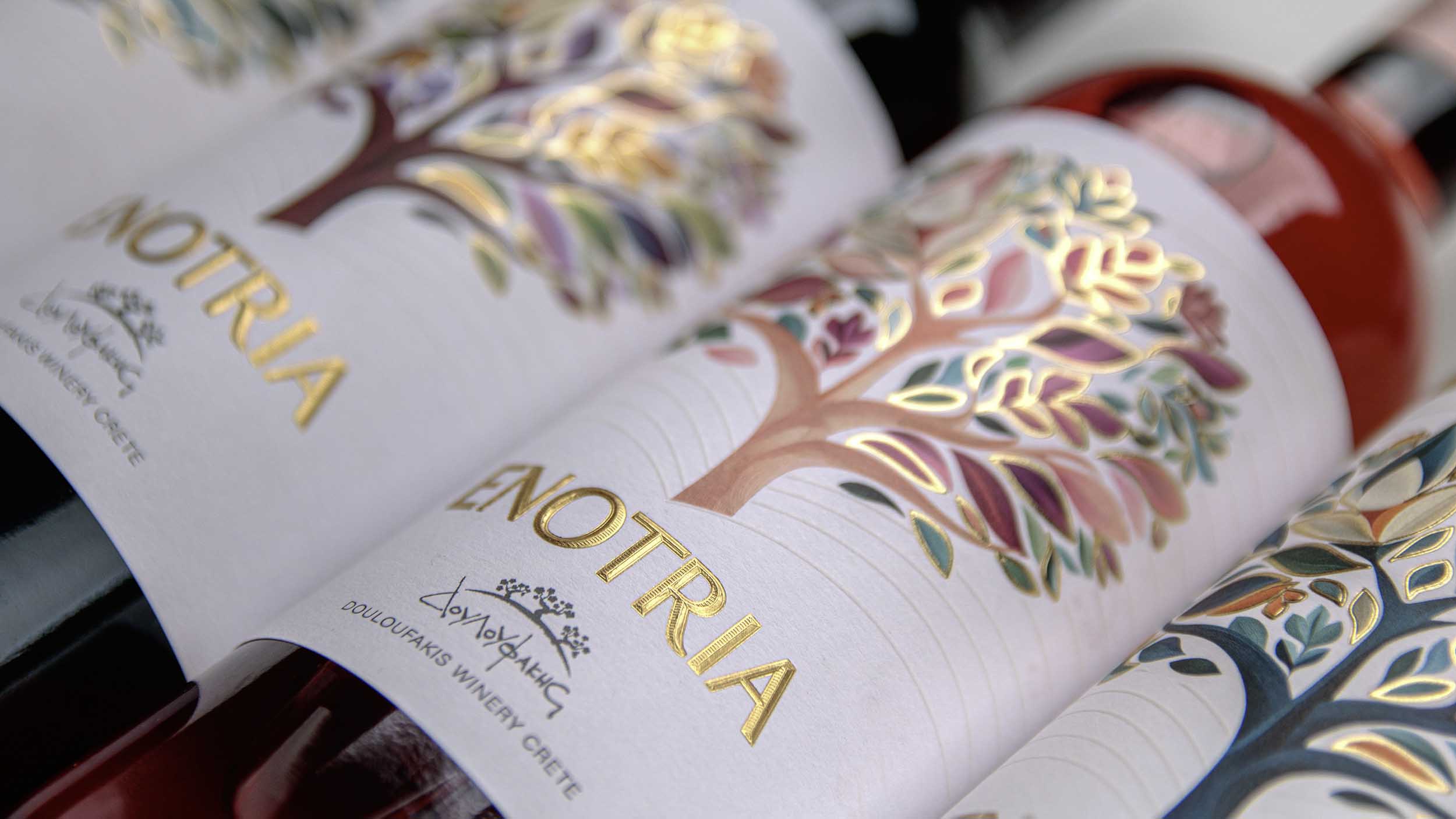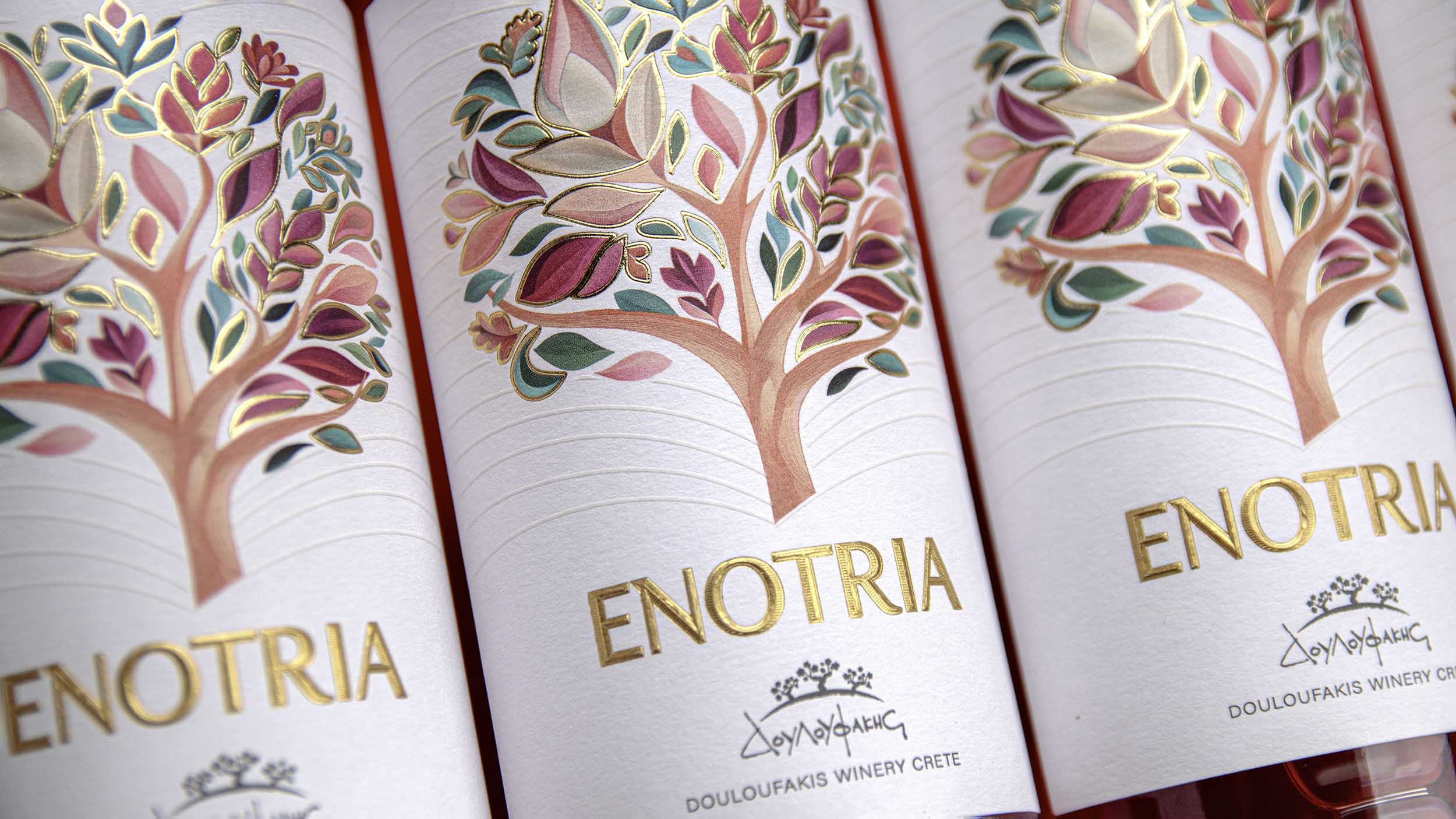 Κάθε λεπτομέρεια της νέας ετικέτας Enotria έχει σχεδιαστεί με προσοχή, ώστε τα υλικά και η ποιότητα της εκτύπωσης να αποδίδουν τη φροντίδα και τη συνέπεια που χαρακτηρίζουν τα κρασιά του Οινοποιείου Δουλουφάκη.